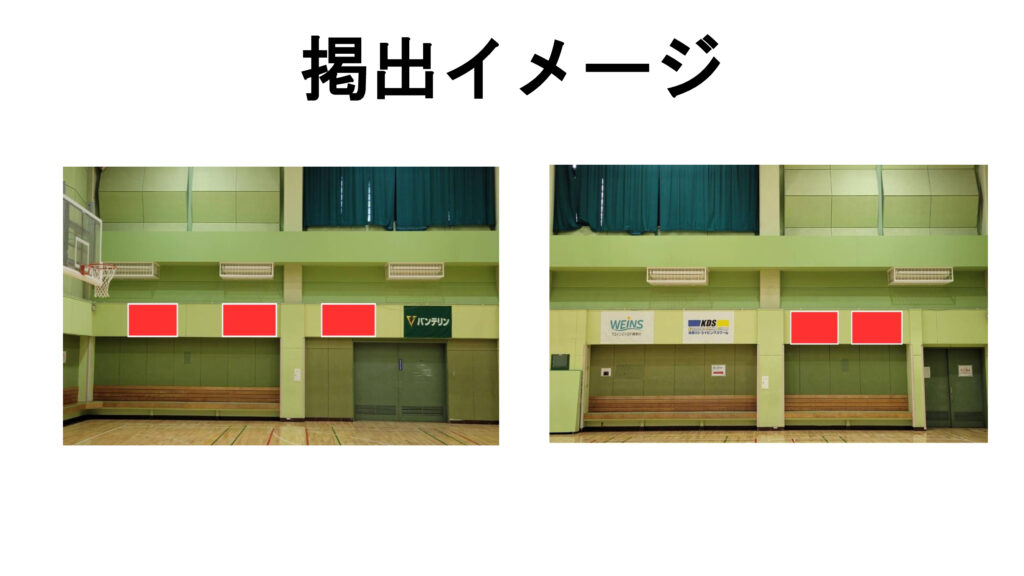 広告看板掲出のご案内 2024年11月28日 最終更新日時 : 2025年10月18日 takigashira たきがしら会館では体育室内の広告掲出を随時募集しております。下記、概要ご確認の上ご興味のある方は施設までお問合せ下さい。 ■広告掲出概要【掲出箇所】体育市室内壁面※応募は1ヵ所単位でお申込み可能です 【サイズ】横1,870mm×縦850mm